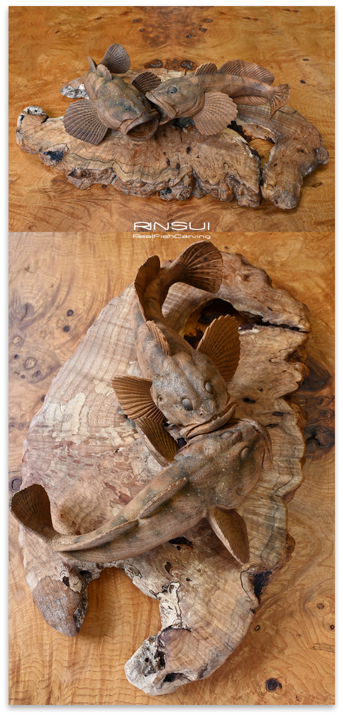 魚本体を彫り進める中台座にする材も同時に進めて行きます。
