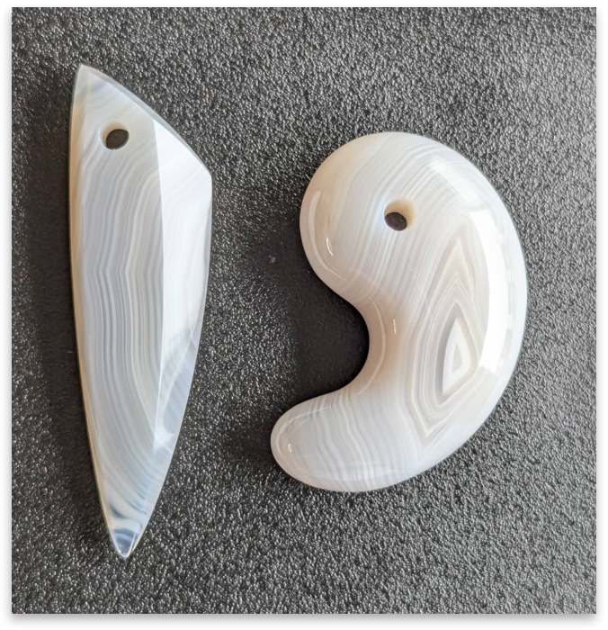 左:ズイガ®(玉髄を牙の形にデザインしたもの) 右:クロスドロップ