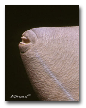 カワハギ独特のチョボ口、でも小さな口の中にはクチバシのような物を噛み切る歯が。