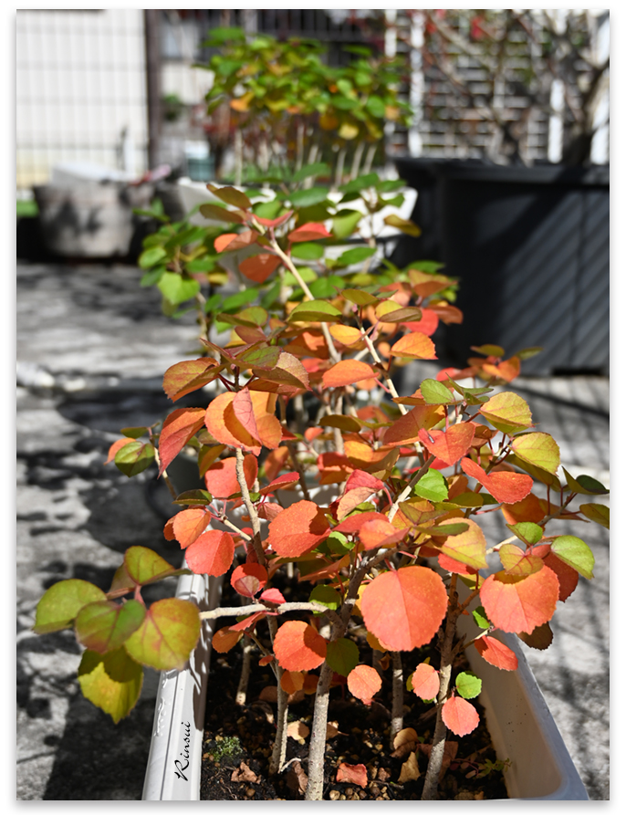 身近なところで色付いてきたプランターのハマボウを愛でる。