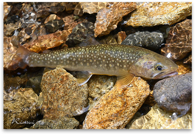 どうやらイワナ釣りの方は芳しくなかった様子で我々はさらに上に。その間、尺には満たないがこの川らしい